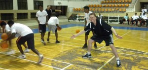 We enjoyed a nice start to an extensive four days training on Offenses and Defenses for the 40 players and 25 coach attendees. We started warm-up drills and had the coaches learn and emulate the following day. We ran , dribbled and sweated our way thru the heat in gymnasuim. Its a great feleling to give it your all!